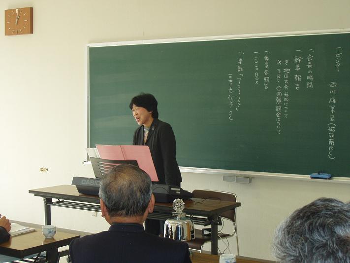 2004年1月21日 井波庄川ロータリークラブ卓話 「ロータリーソング」 三吉志代子さん(砺波南ロータリークラブ 三吉外男氏夫人)