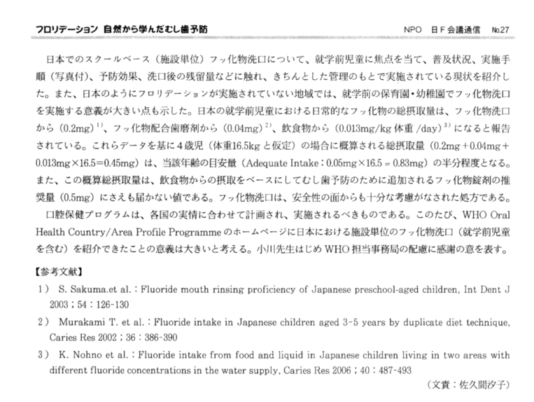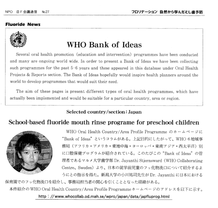 WHOホームページに日本のこどものフッ化物洗口の写真と洗口について掲載されました。