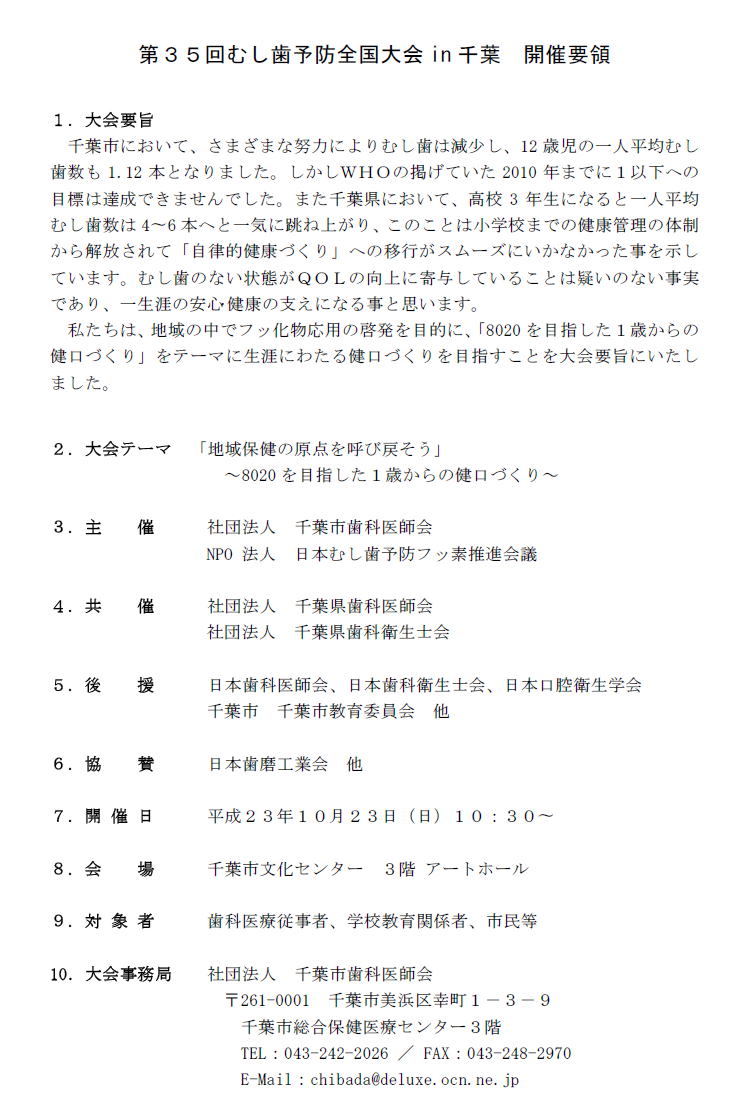 第35回むし歯予防全国大会in千葉 開催要領が決まりました。