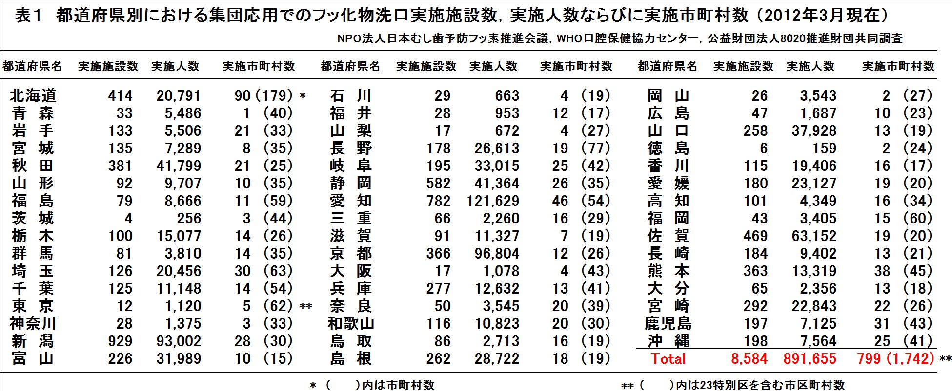 @「全国1,742市(区)町村のうち799市(区)町村でF洗口を実施(45.9%)」