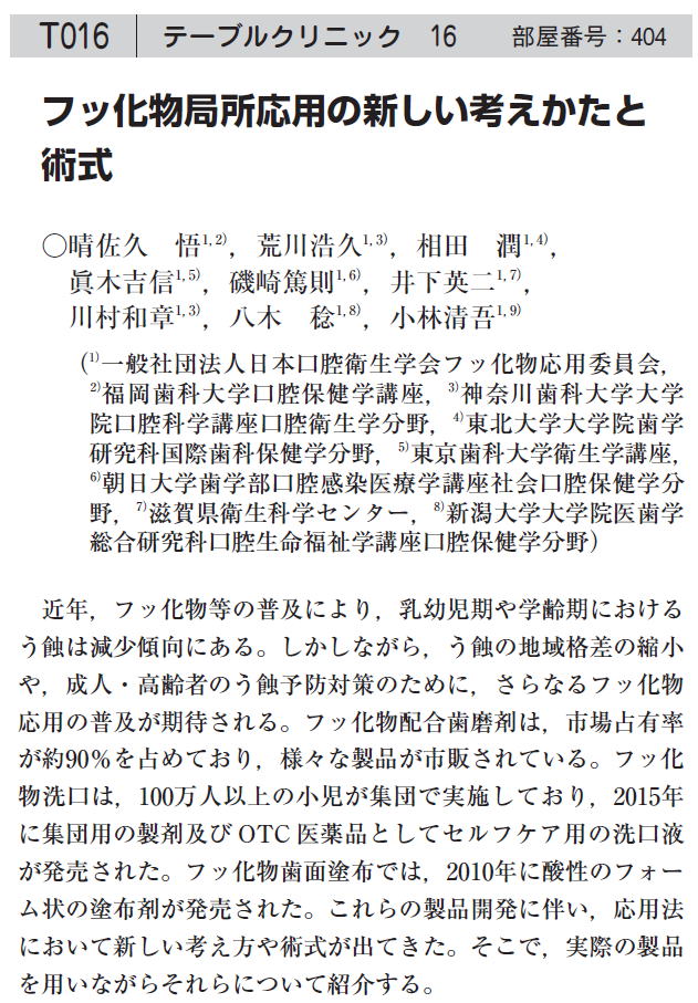 2第23回日本歯科医学会総会でフッ化物に関するテーブルクリニックが実施されます。是非ご参加ください。