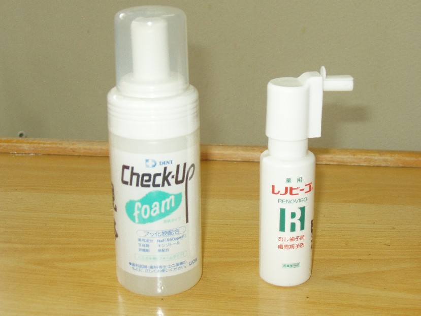 左:泡状のフッ化物配合歯磨剤、右:フッ化物配合スプレー