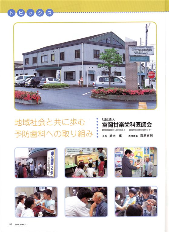 また、富岡甘楽地区にある特別養護老人ホームなどの施設と委託契約を結び、積極的に歯科健診と口腔衛生指導を毎年実施している。
