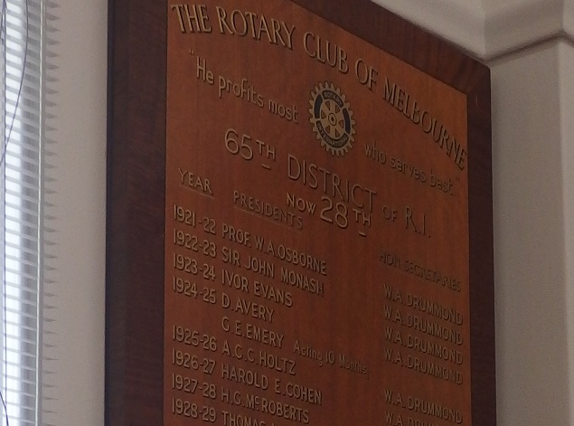 ![]() メルボルンRC 歴代会長のパネル |