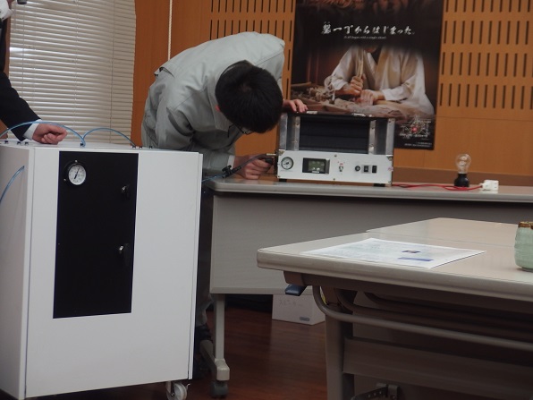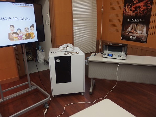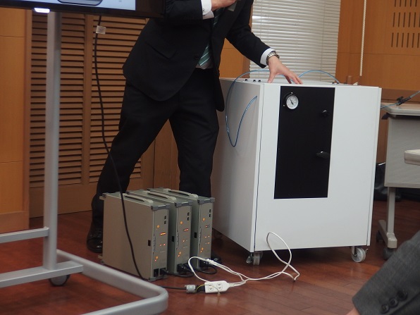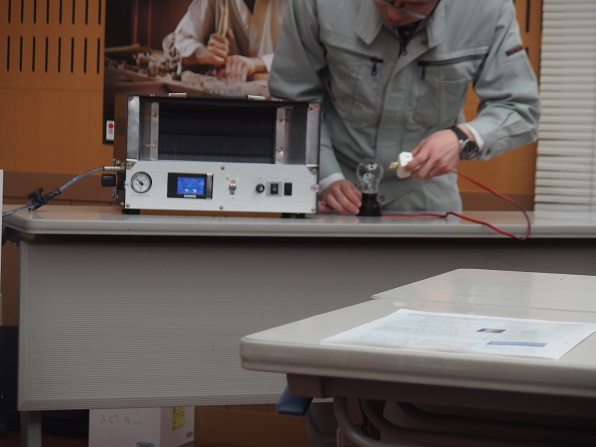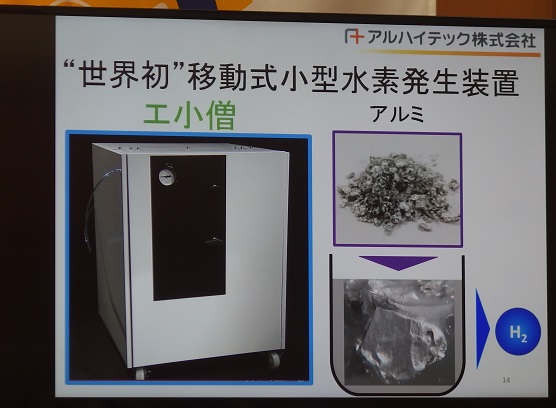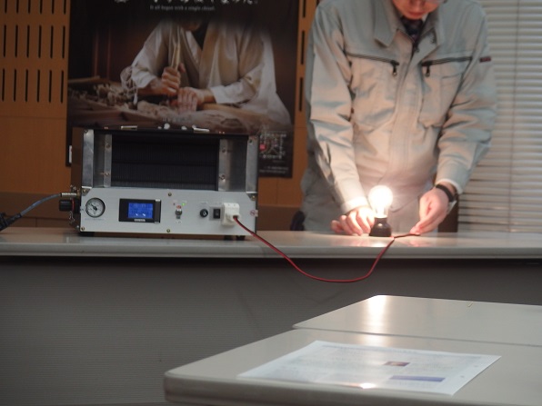 アルハイテック株式会社の開発された「エ小僧」君 アルカリ溶液を用いて、水素ガス発生と発電ができます