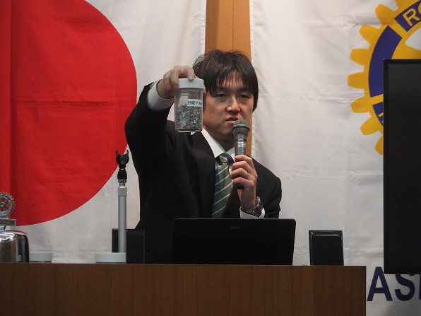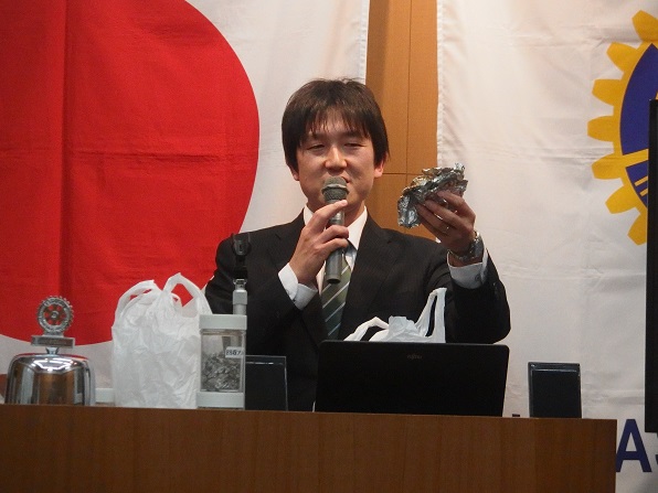 卓話「アルミ廃材から、水素ガス生成、発電まで」 アルハイテック株式会社 高坂直樹氏(同伴:管理部長 齋藤康弘氏、渡辺裕晶氏)