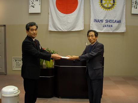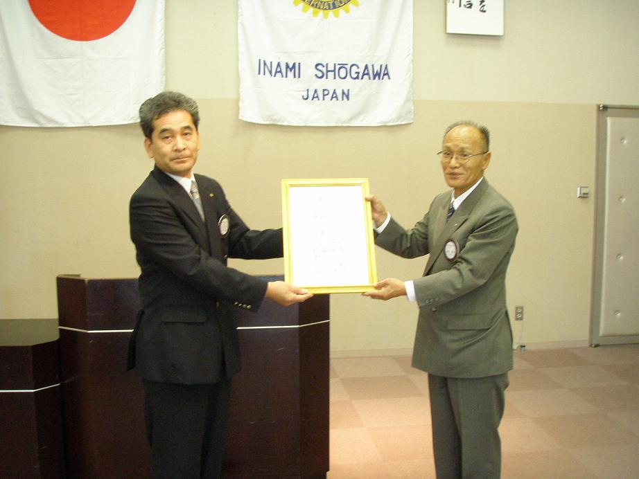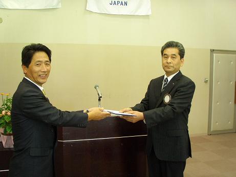 ![]() 今年度米山功労者表彰:三角信行会長へ伝達 |