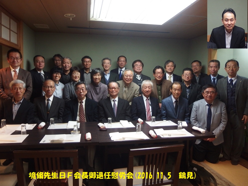 NPO日本フッ化物むし歯予防協会 境脩会長御退任慰労会 2016年(平成28年)11月5日(土)午後7時〜 鶴見駅前FUGA3「寿楽」