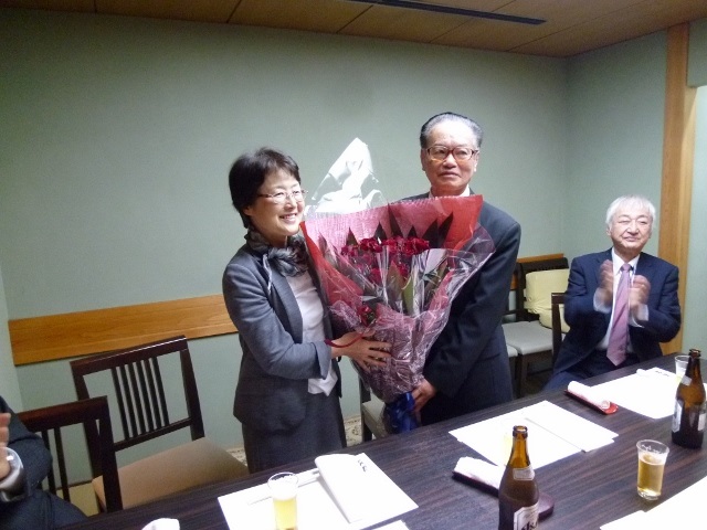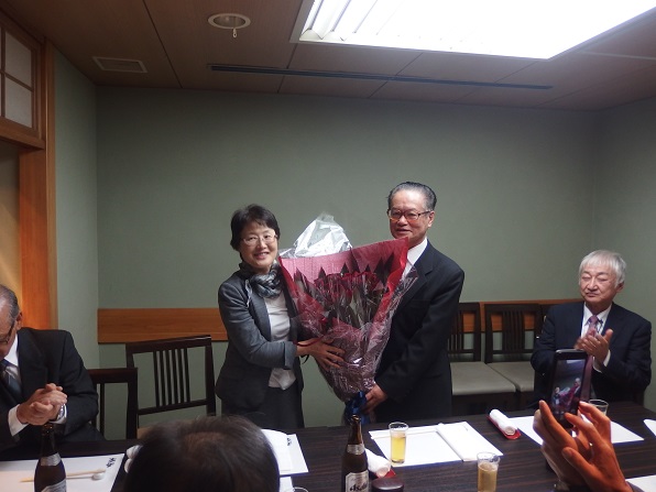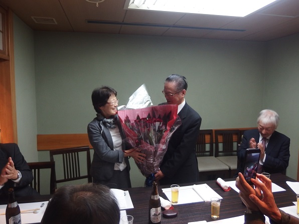 黒瀬真由美理事から、はるばる岡山から新幹線で運ばれた、花束の贈呈。