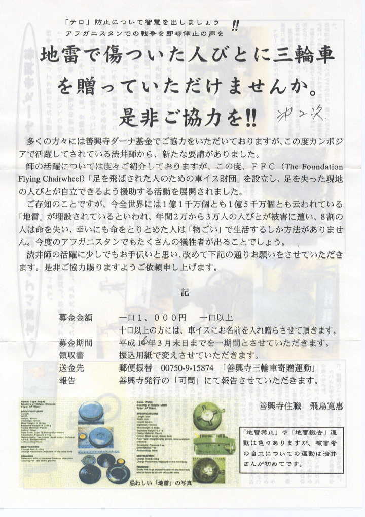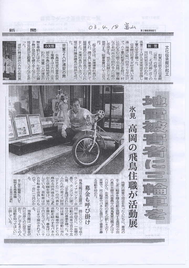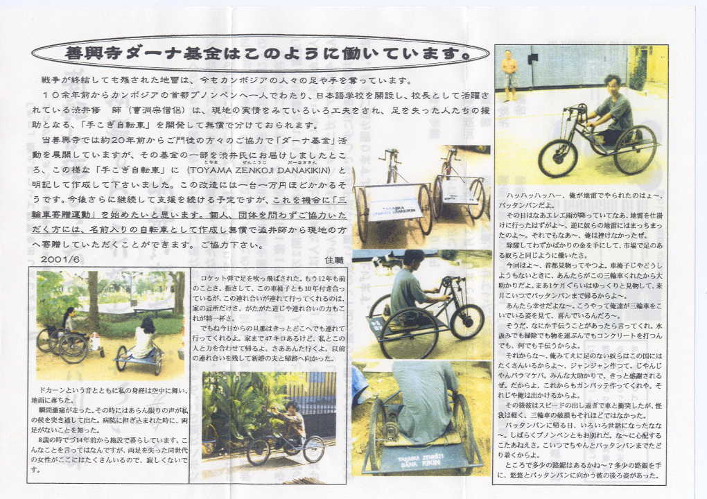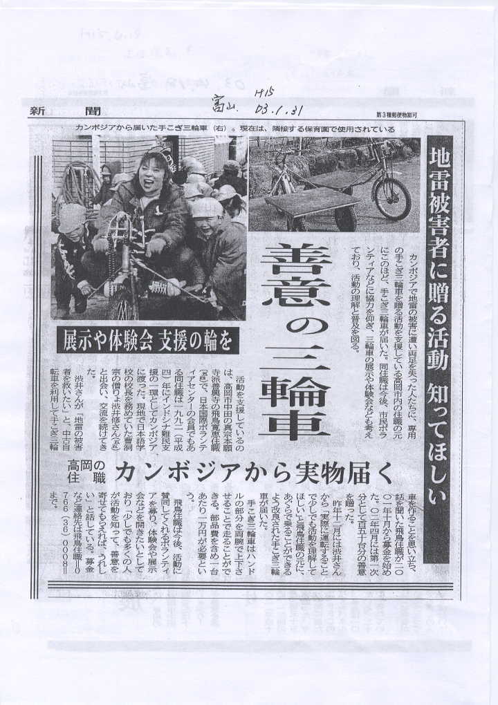2003年6月18日 卓話「カンボジア地雷被害者:三輪車寄付ボランティア活動(高岡市中田 善興寺ダーナ基金)の話」(上田 昭二会員)