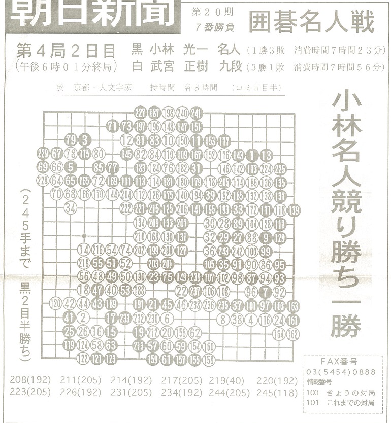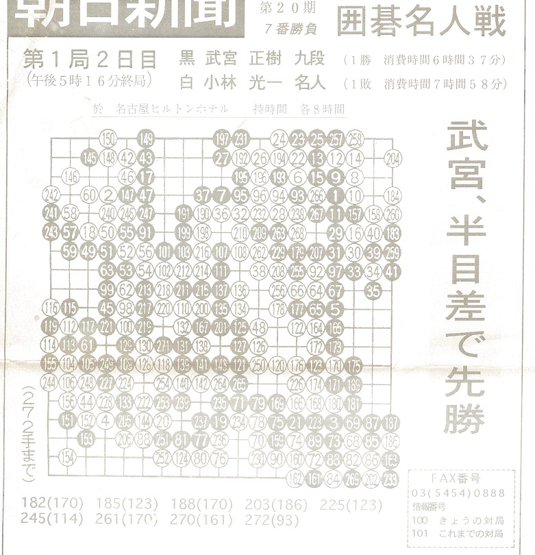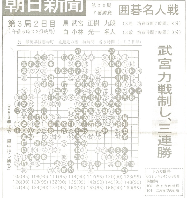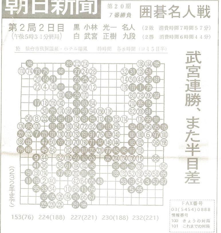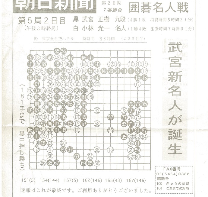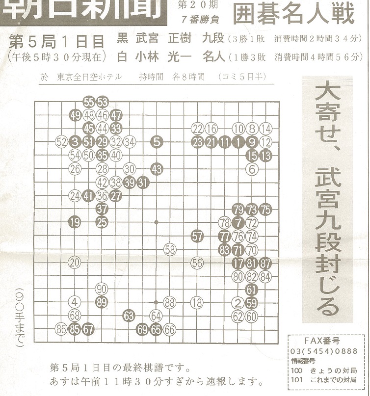 武宮正樹九段 対 小林光一名人 朝日新聞FAX速報より
