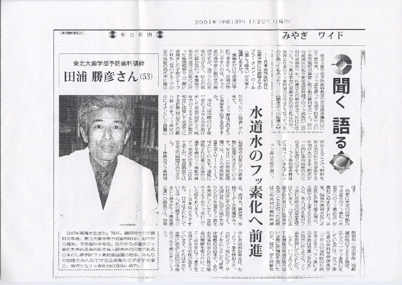水道水のフッ素化へ前進−−東北大学歯学部予防歯科講師・田浦勝彦さん(53)