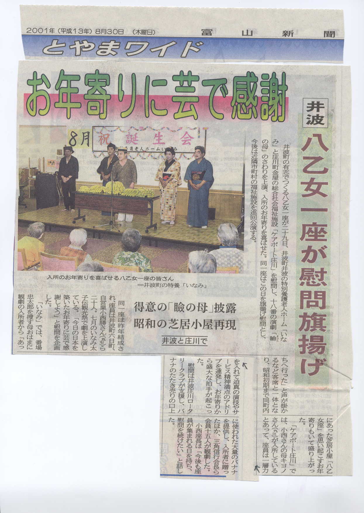井波庄川ロータリークラブと八乙女一座のジョイント慰問